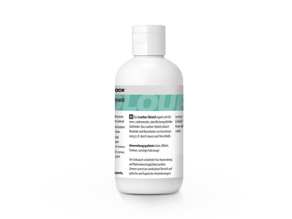 Leather Shield je vhodný pro novou, hedvábně matnou, povrchově barvenou hladkou kůži. Leather Shield chrání novou kůži a umělou kůži před znečištěním (např. od džínů) a opotřebením a udržuje ji pružnou.