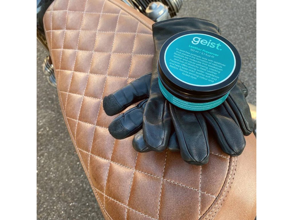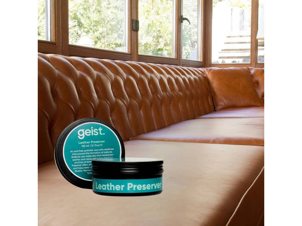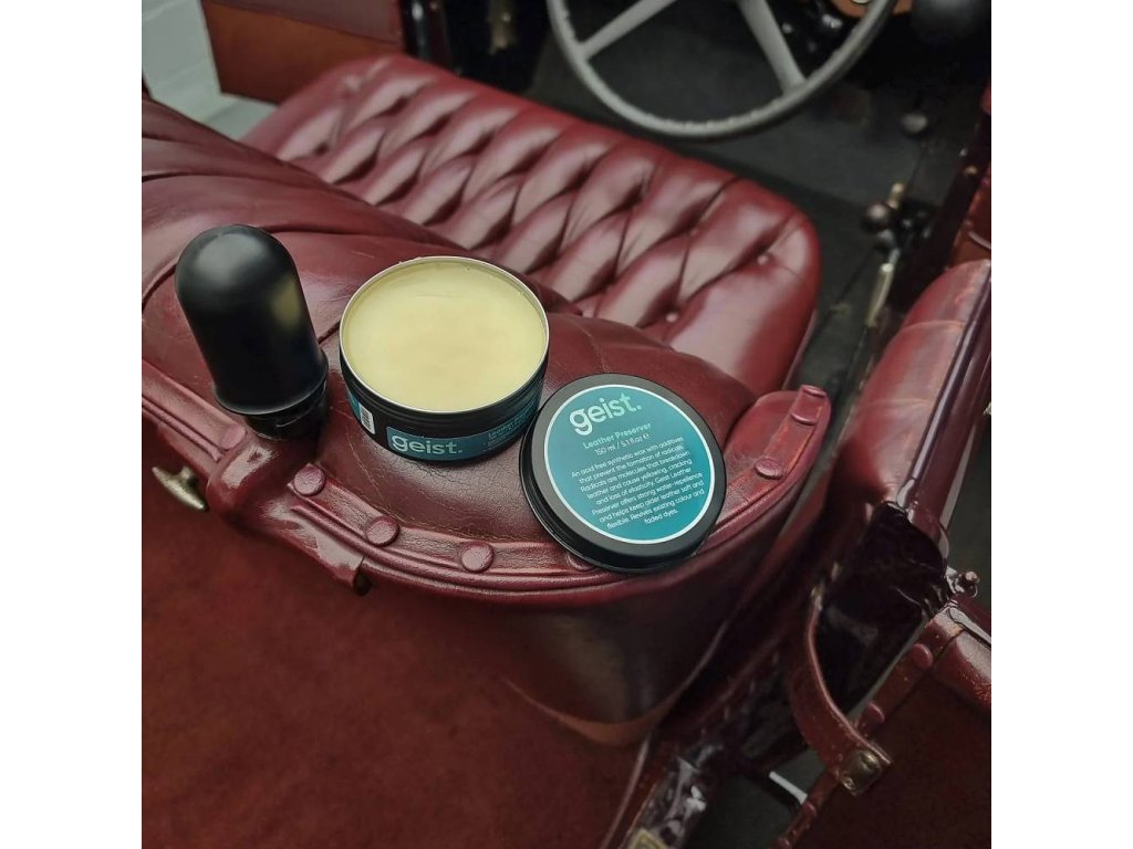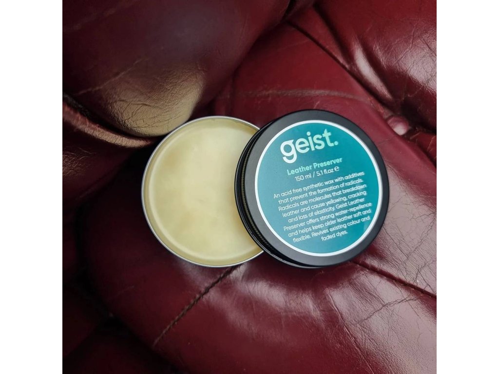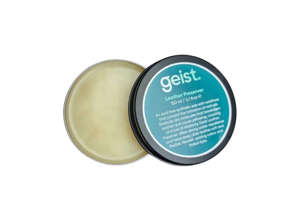 Geist Leather Preserver je vysoce kvalitní syntetický vosk vyvinutý v Německu. Chrání, změkčuje a obnovuje vybledlé barvy kůže. Obsahuje UV filtry a polyfenoly, které chrání před slunečním zářením a volnými radikály. Neobsahuje chemikálie ani živočišné složky. Ideální pro dlouhodobou péči o kůži.