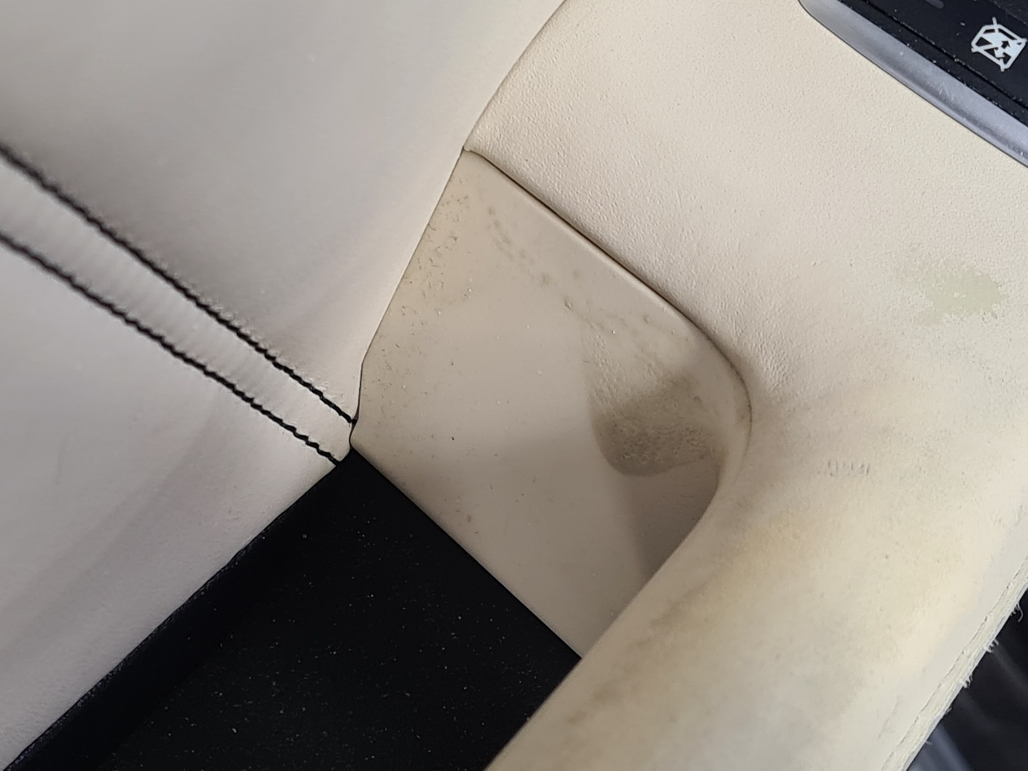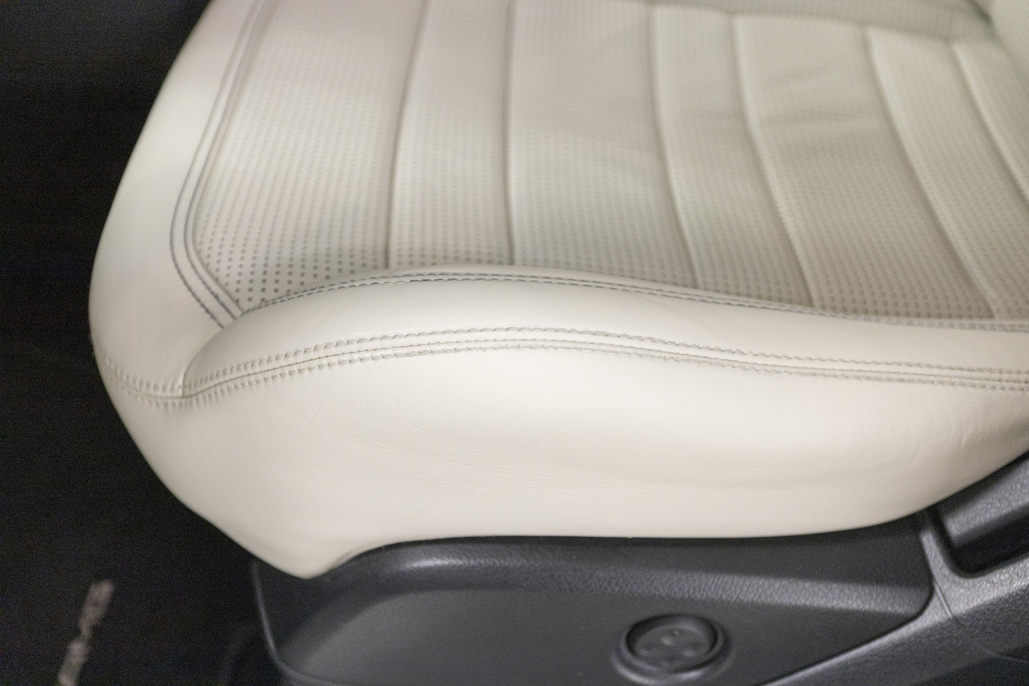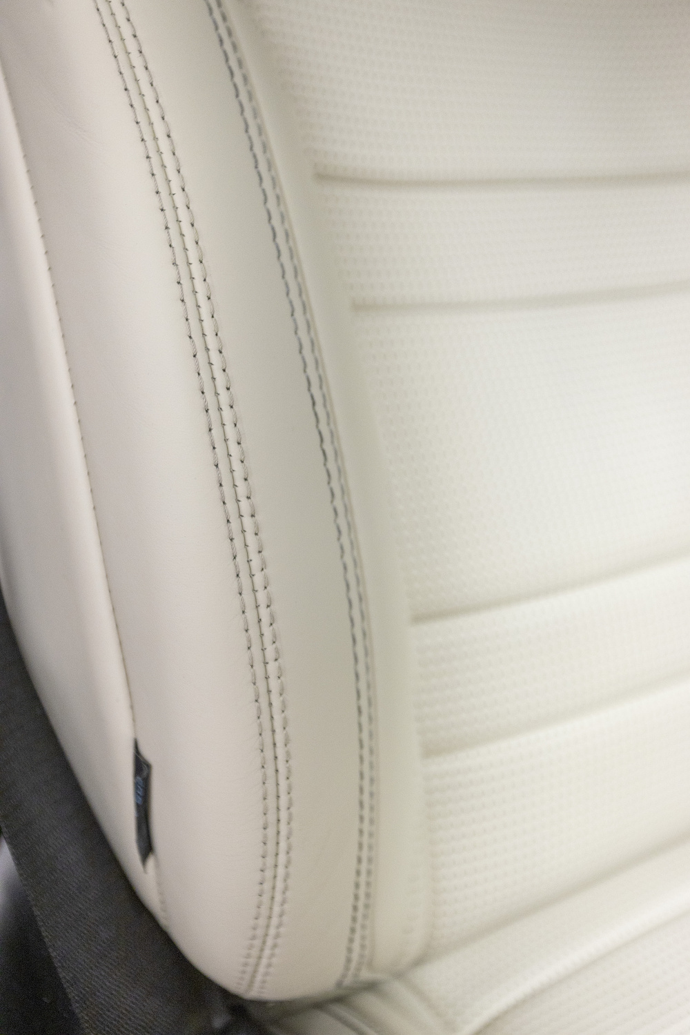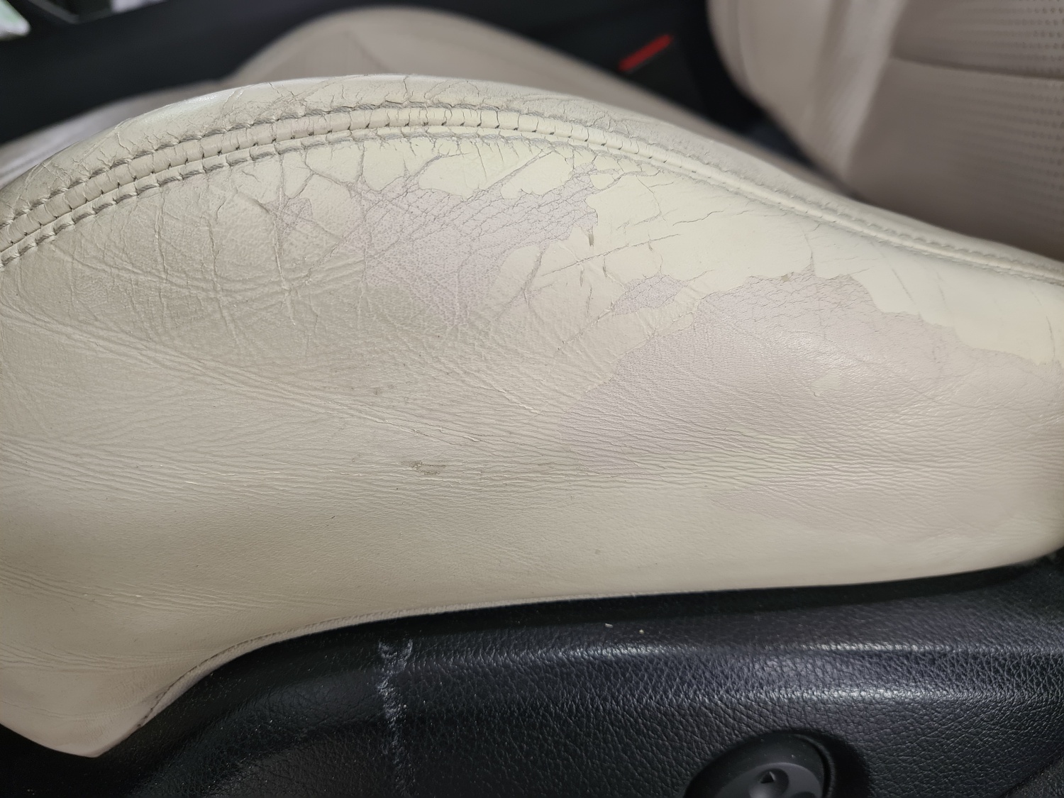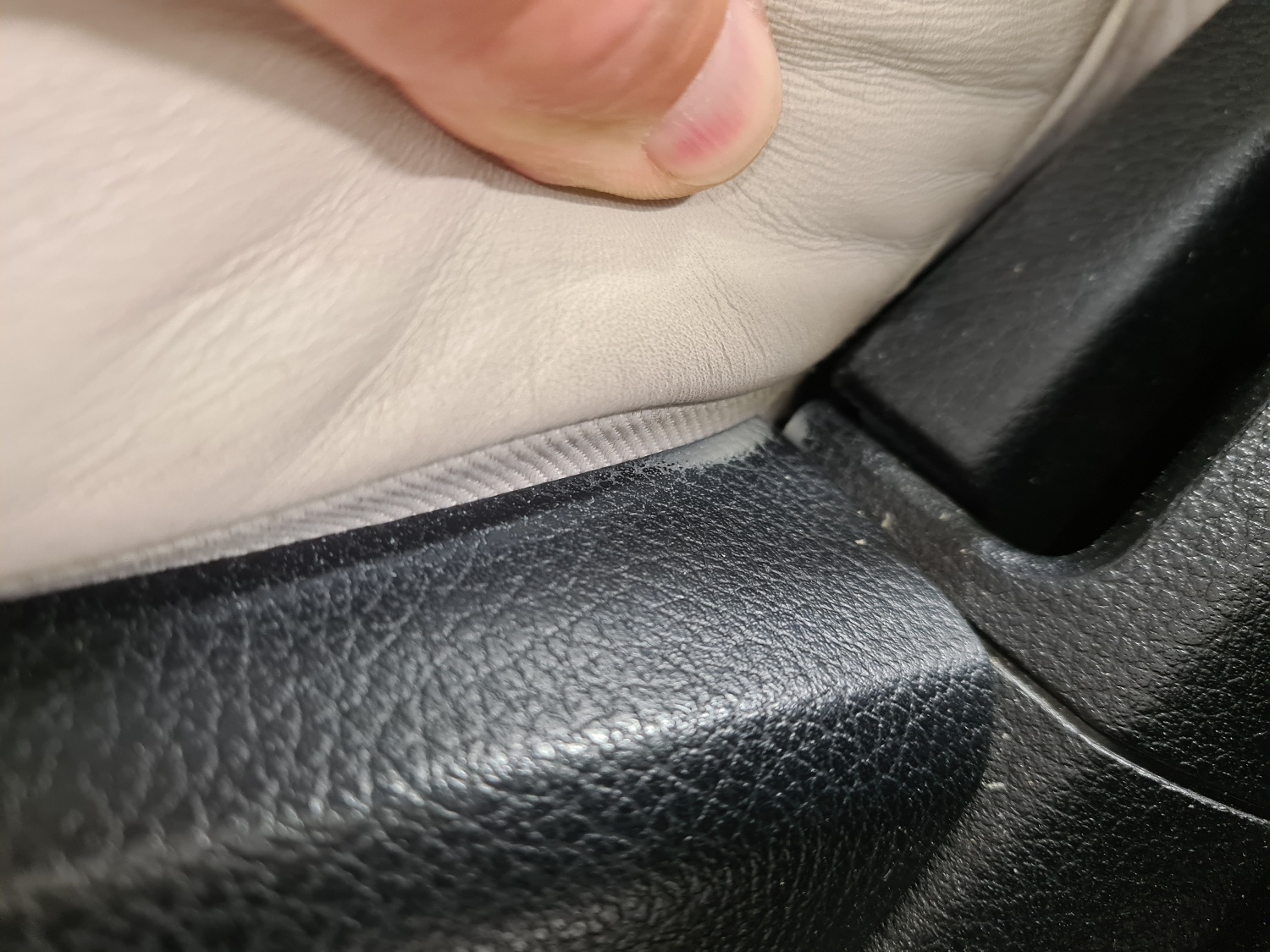 Hlavním úkolem u tohoto auta byla renovace kožených částí interiéru. Zejména přední část interiéru byla ve špatném stavu - opotřebení madel dveří, středové opěrky a předních sedadel bylo velmi neodborně zamaskováno nástřikem barvy. Výsledkem byl popraskaný a špinavý nástřik barvy, loupající se barva, stékance, zástřiky na okolních plochách (černé plastové díly, černá kůže).