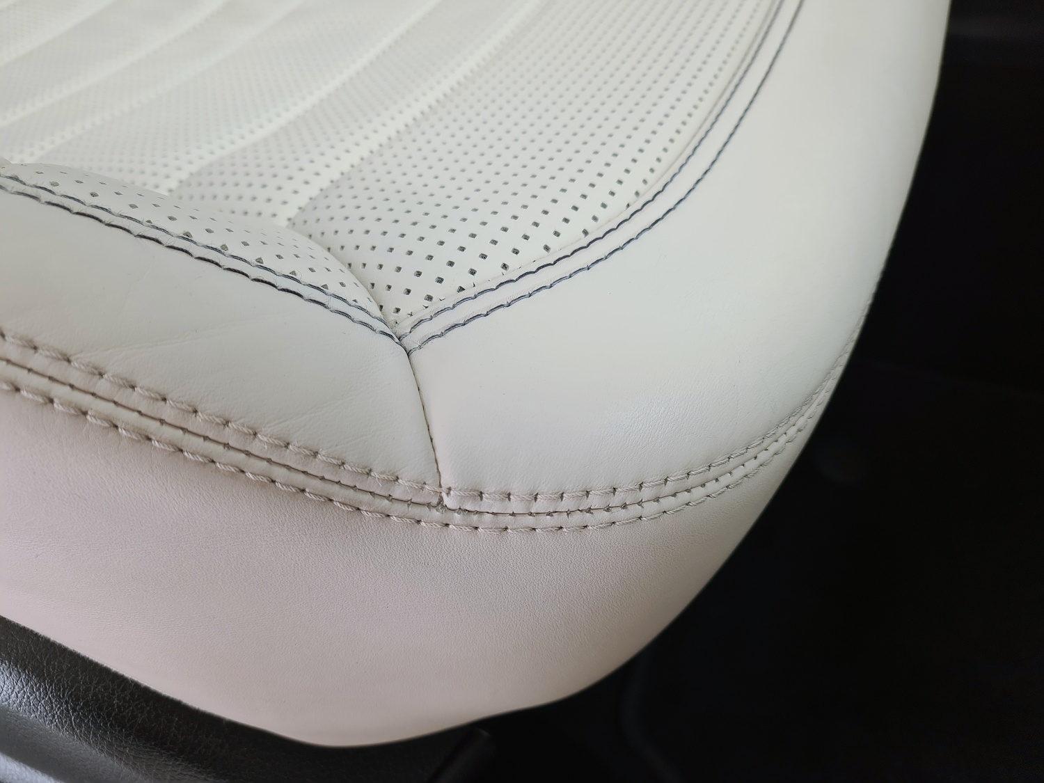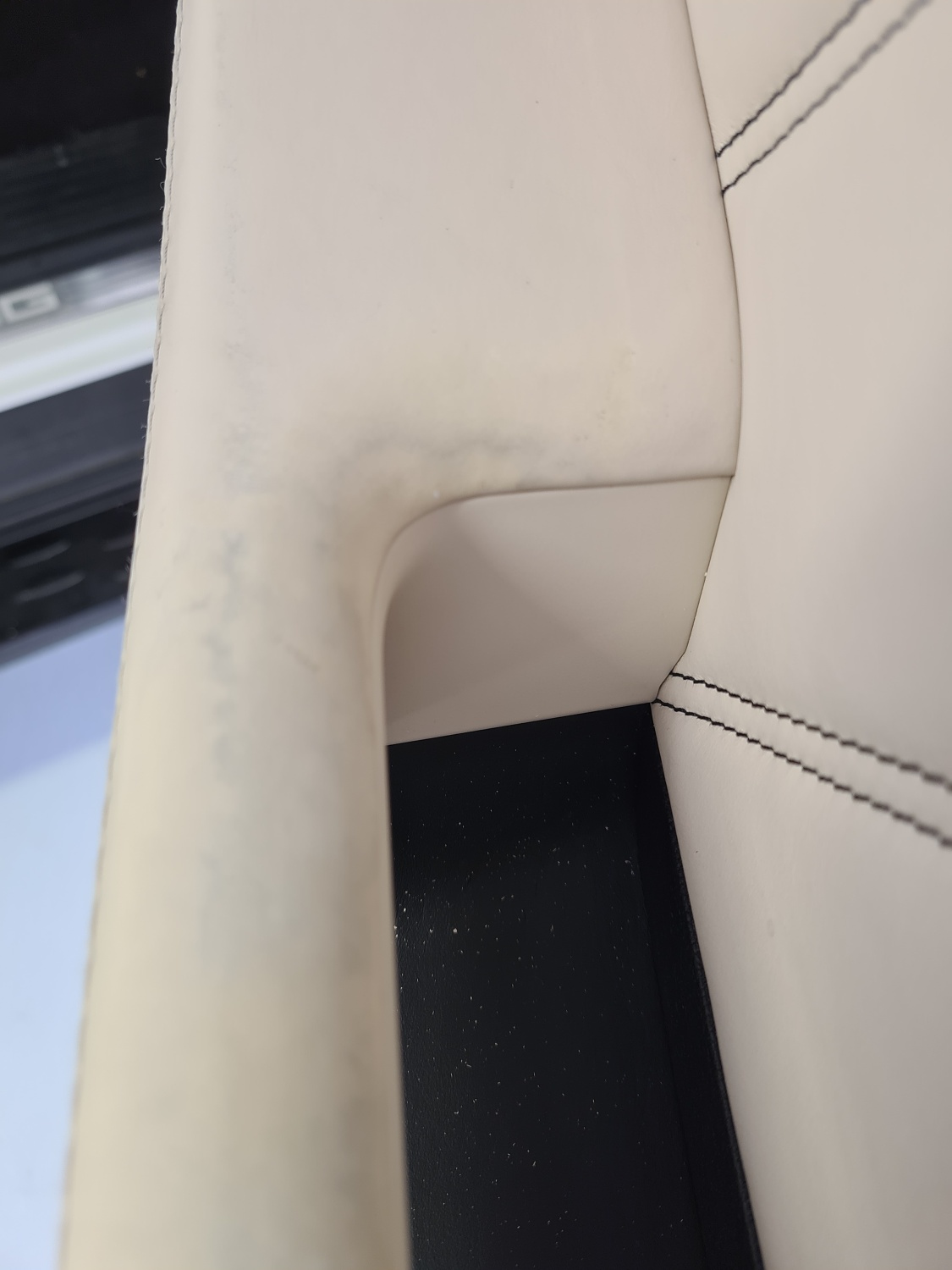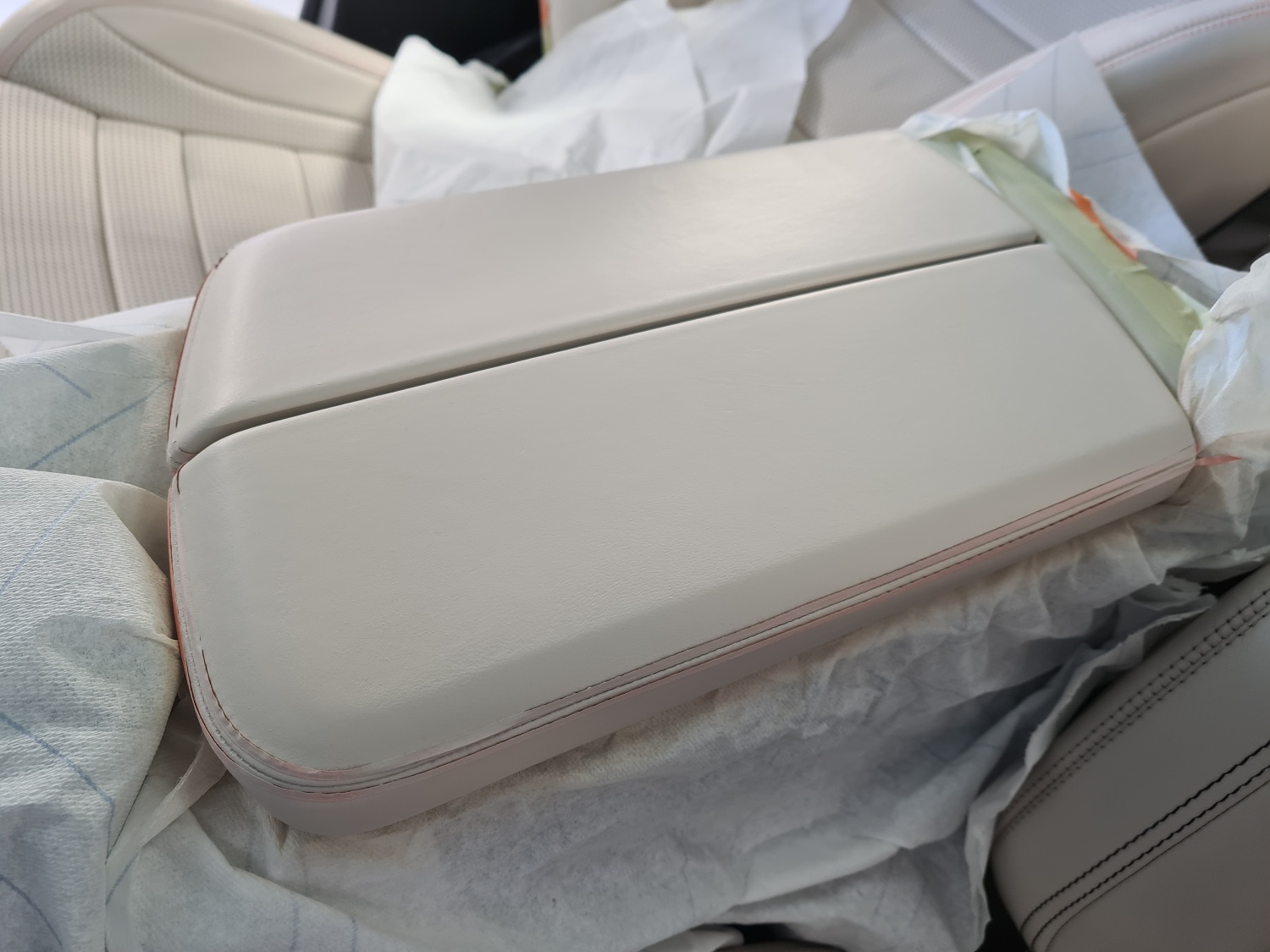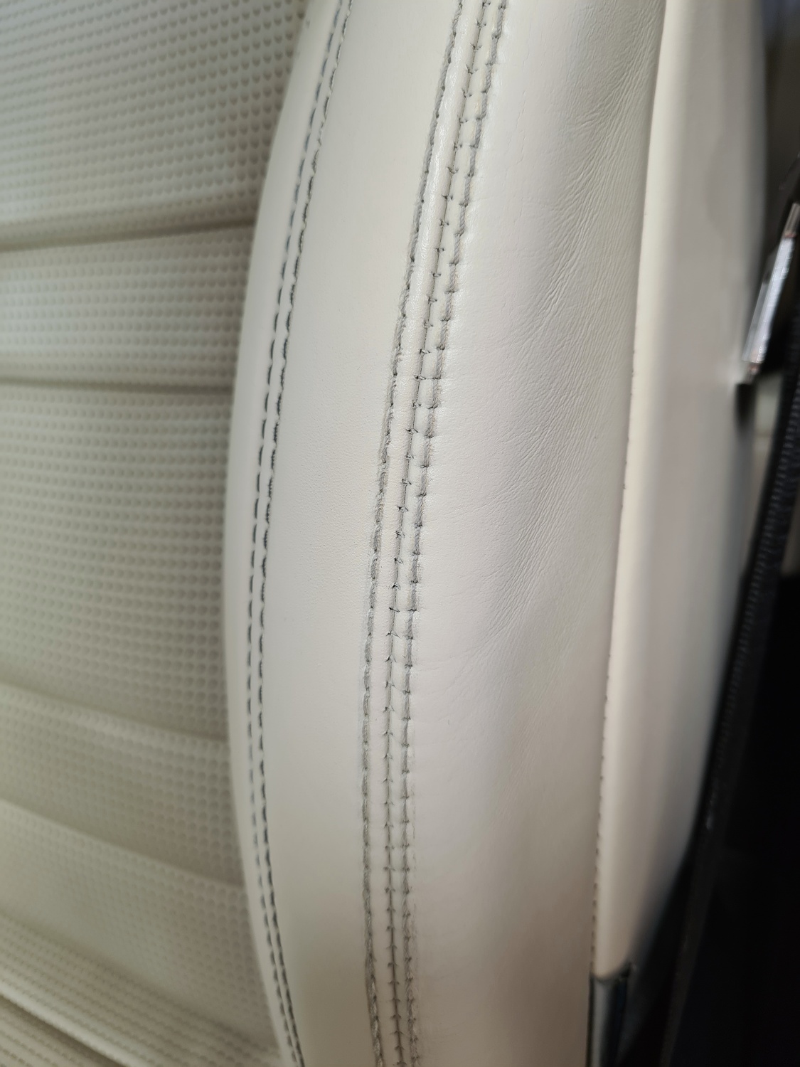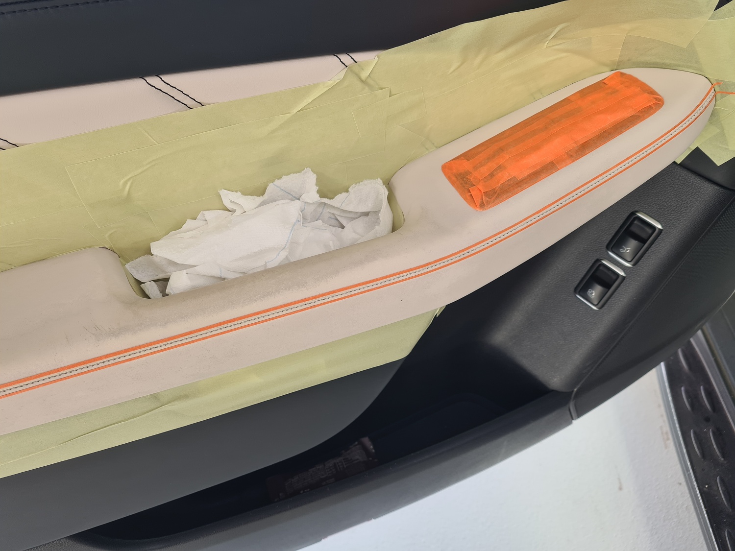 Hlavním úkolem u tohoto auta byla renovace kožených částí interiéru. Zejména přední část interiéru byla ve špatném stavu - opotřebení madel dveří, středové opěrky a předních sedadel bylo velmi neodborně zamaskováno nástřikem barvy. Výsledkem byl popraskaný a špinavý nástřik barvy, loupající se barva, stékance, zástřiky na okolních plochách (černé plastové díly, černá kůže).
