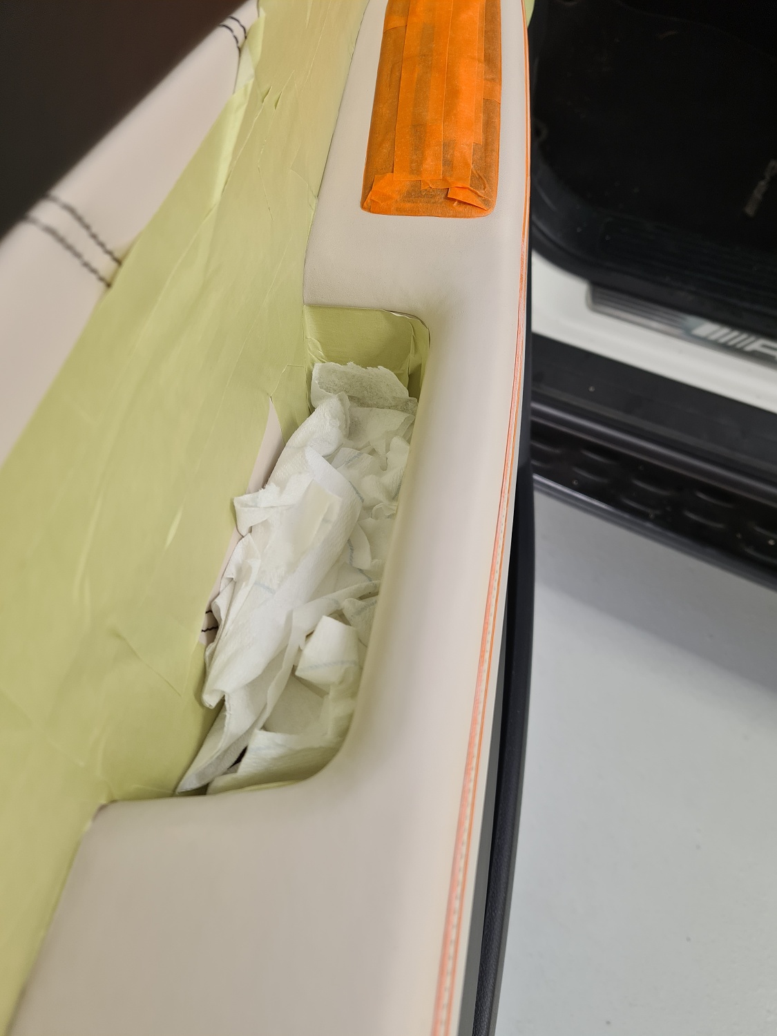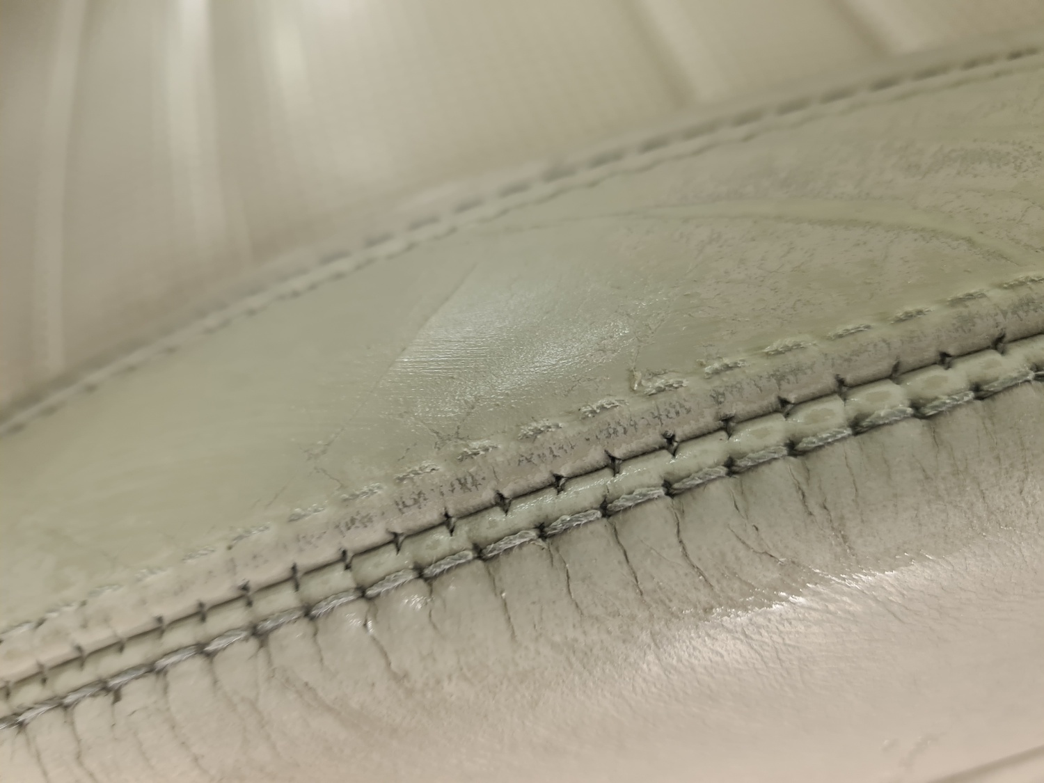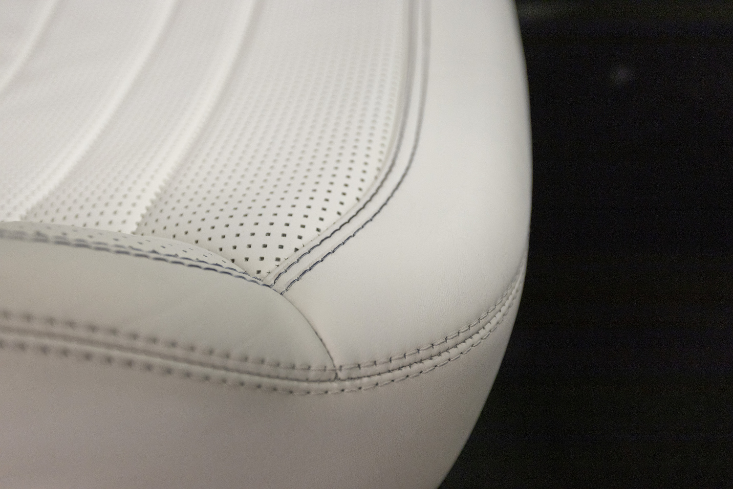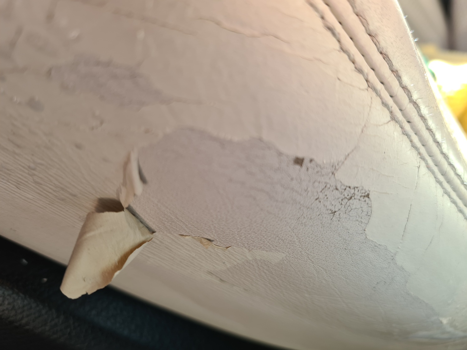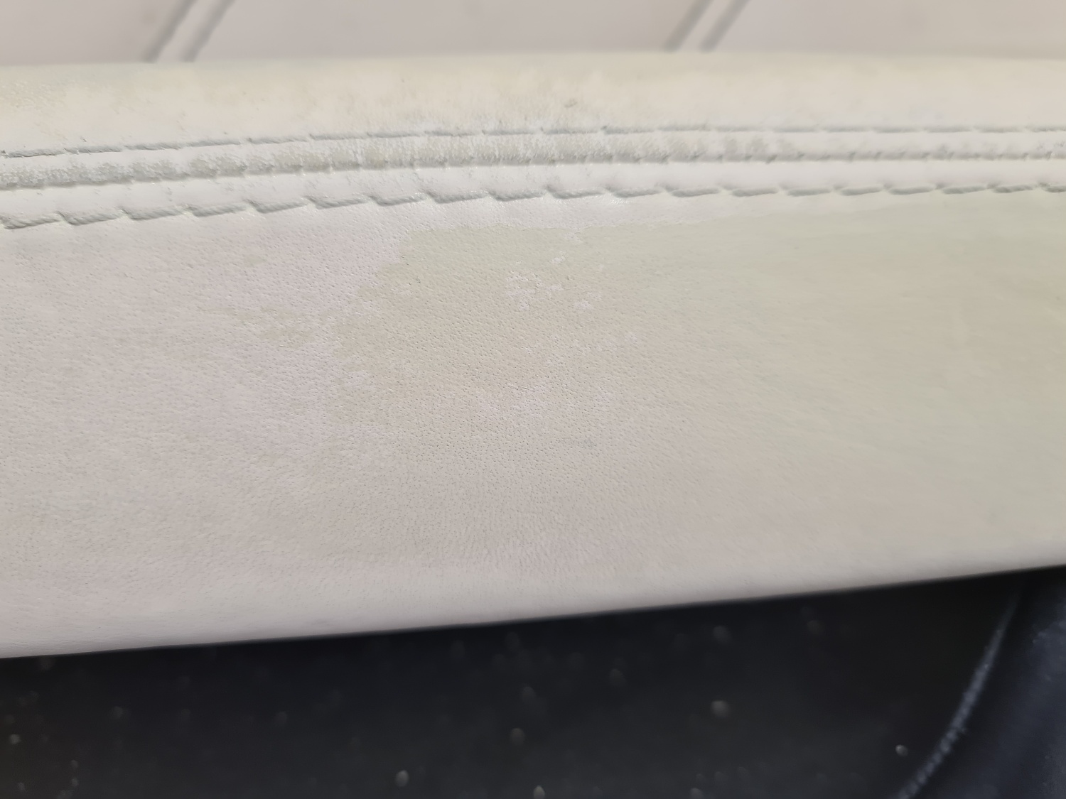 Hlavním úkolem u tohoto auta byla renovace kožených částí interiéru. Zejména přední část interiéru byla ve špatném stavu - opotřebení madel dveří, středové opěrky a předních sedadel bylo velmi neodborně zamaskováno nástřikem barvy. Výsledkem byl popraskaný a špinavý nástřik barvy, loupající se barva, stékance, zástřiky na okolních plochách (černé plastové díly, černá kůže).